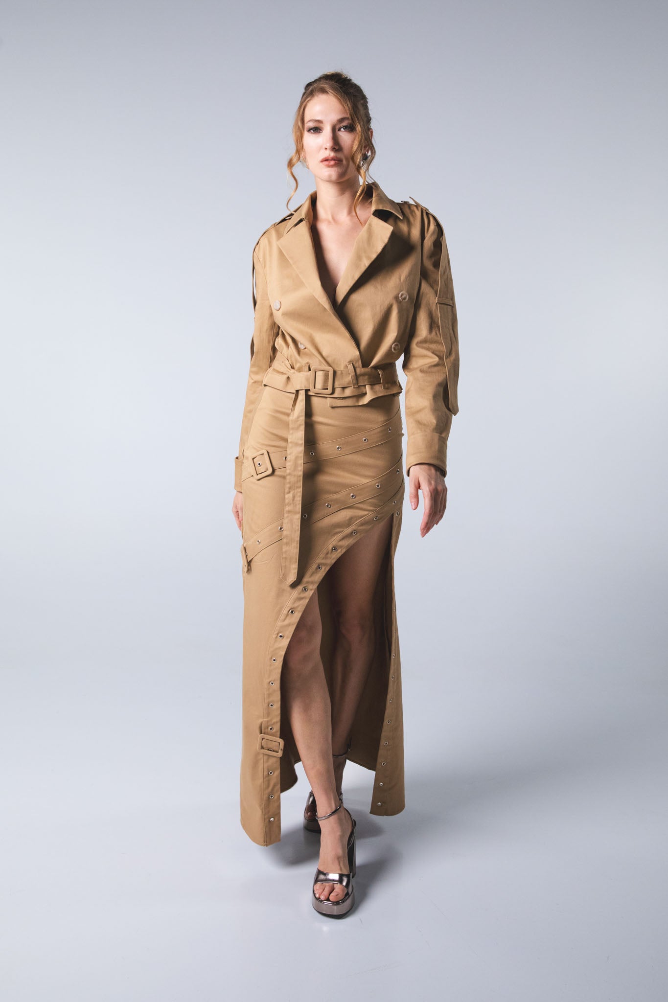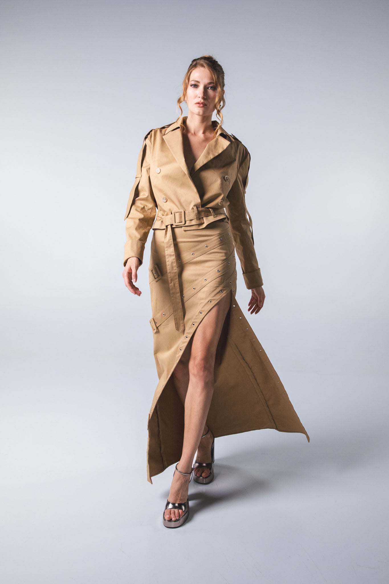 Gonna con bulloni. Made in Italy. La modella è alta 1,78 m e veste la taglia S.